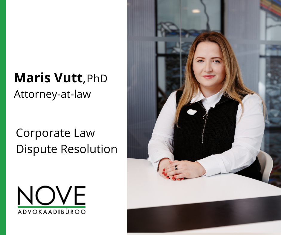 Attorney-at-law Maris Vutt, PhD has joined NOVE team. Maris specializes in the field of corporate law, advising clients on various issues of corporate governance and operation.
