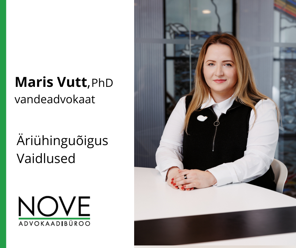NOVE meeskonnaga on liitunud vandeadvokaat Maris Vutt. Maris on spetsialiseerunud ühinguõiguse valdkonnale, nõustades kliente erinevates äriühingu juhtimise ja toimimise küsimustes.